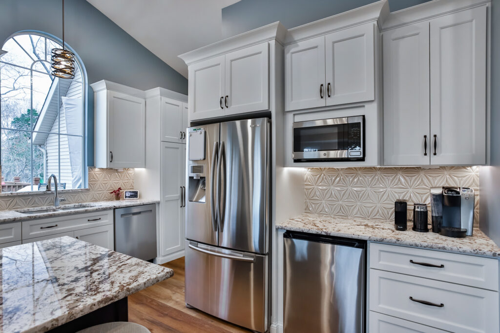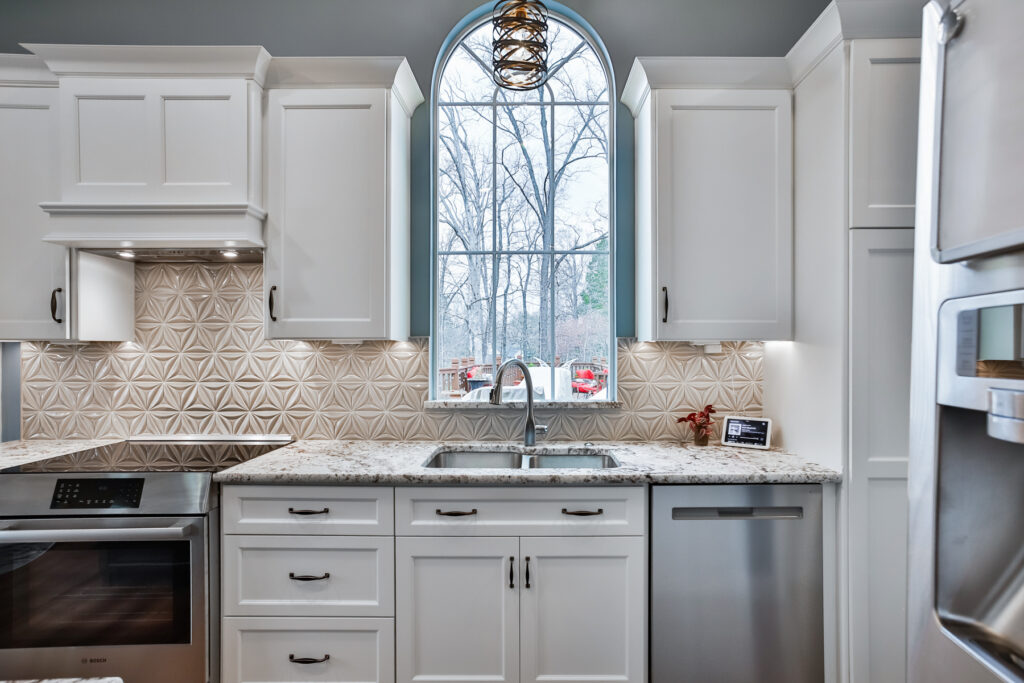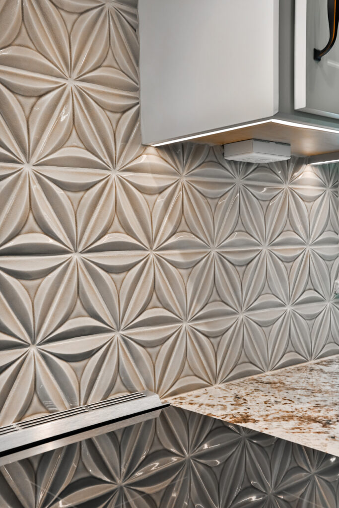 - The backsplash choice! The homeowner immediately fell in love with this geometric tile, and I couldn’t have been more excited to add texture and visual interest without overpowering the space.