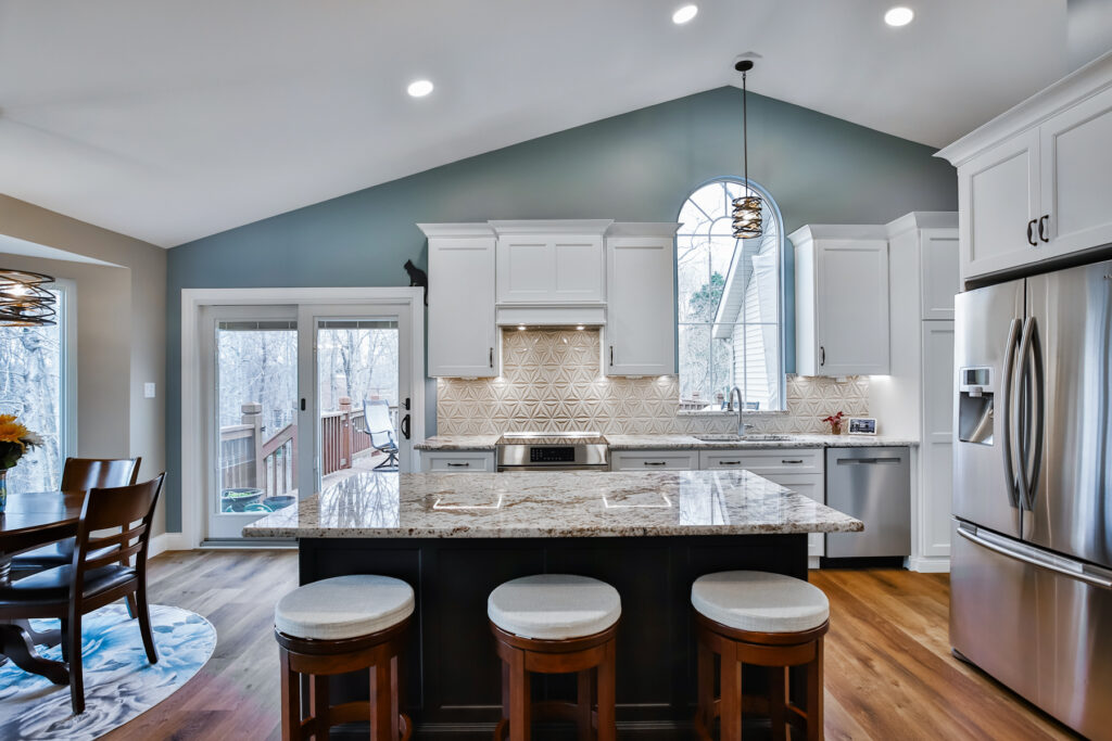 - Increasing the height of the kitchen window to bring in more natural light. This also added a striking vertical architectural element that draws the eye upward.