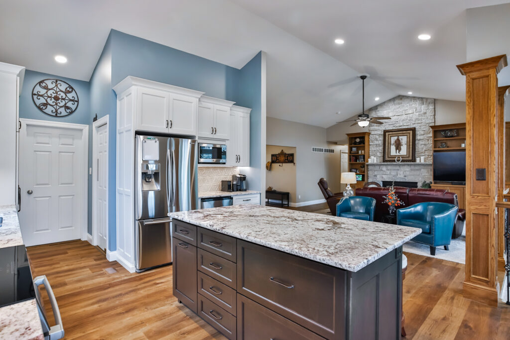 The overall feel of the finished project is modern, warm, and inviting. It blends clean, stylish design with cozy, comfortable elements. The open layout encourages connection and flow between the kitchen and living spaces, making it perfect for both everyday living and entertaining. With its mix of light tones, natural textures, and thoughtful details, the space feels polished yet personal – like a home that’s both beautiful and lived in.