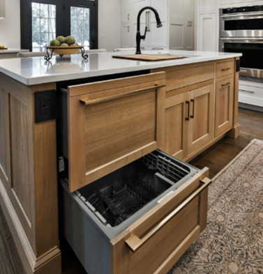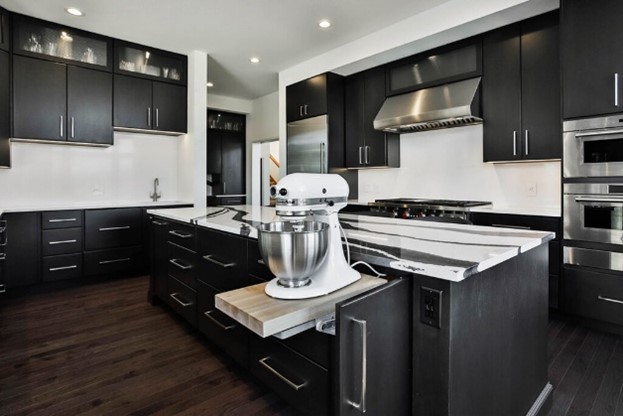 With the push towards clutter-free spaces, innovative storage solutions are a must-have for modern kitchen islands. We’re seeing a rise in custom drawer organizers, pull-out trash and recycling bins, and appliance garages integrated into island designs. These clever storage options keep essentials close at hand while maintaining a sleek, uncluttered appearance.