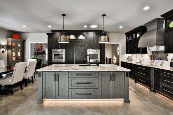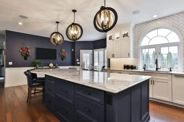 Lighting is crucial in island design, with oversized pendant lights and sculptural fixtures becoming focal points. The trend is leaning towards bold, artistic, and layered lighting choices that illuminate the workspace and add a touch of drama and personality to the kitchen.